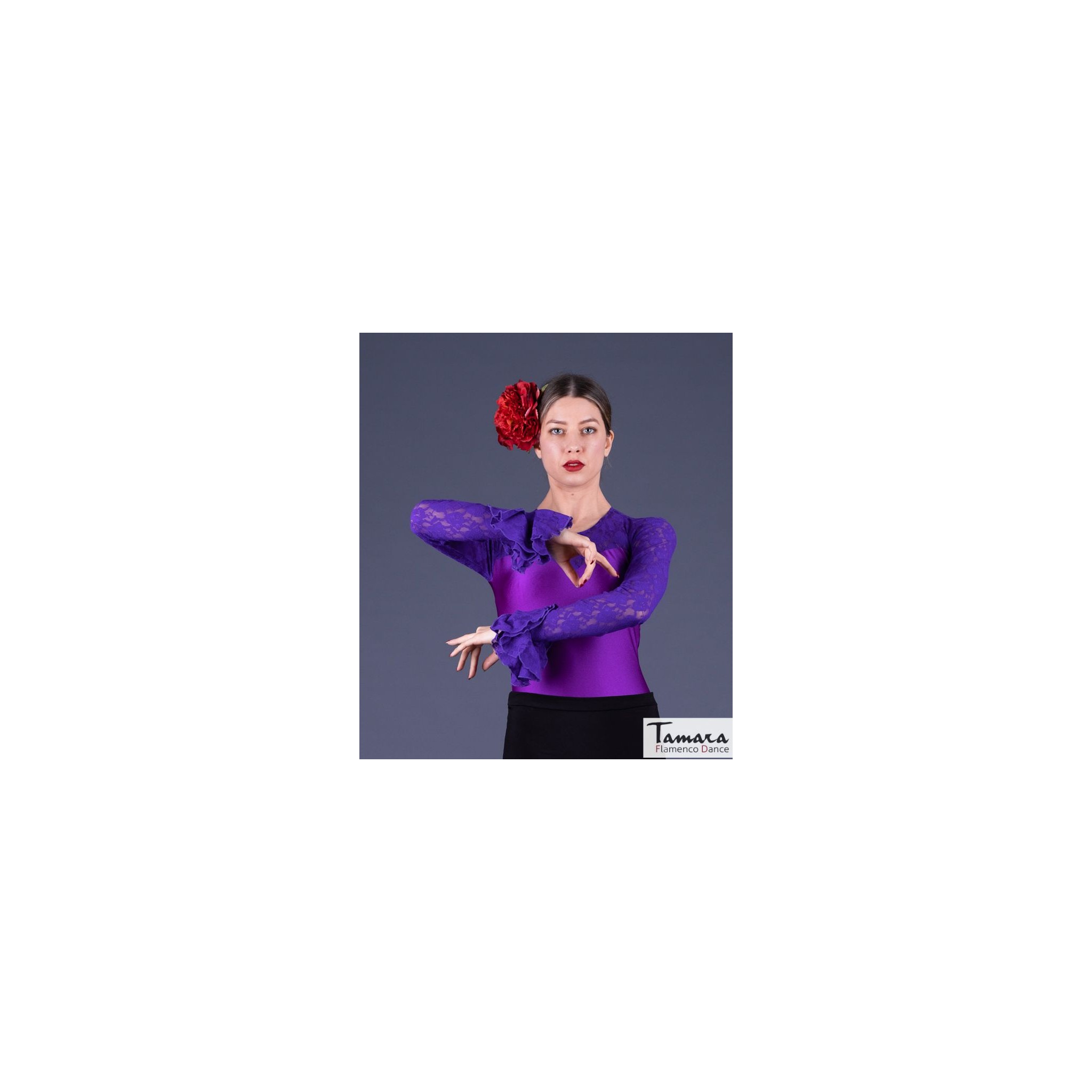 The Desplante body with flounces is one of the most stylish and artful flamenco dance body models. It is a lycra body with the top and sleeves in lace and decorated with small flounces. This is one of the most elegant models that combines very well with everything, be it classic skirts to give them a more special touch or more daring skirts to compensate with something of a more basic color. The fabrics are of high quality, being 100% authentic lycra and the lace very resistant and soft.  You will feel very comfortable wearing it for any occasion, both rehearsals and more special shows because it is a very versatile and elegant body.