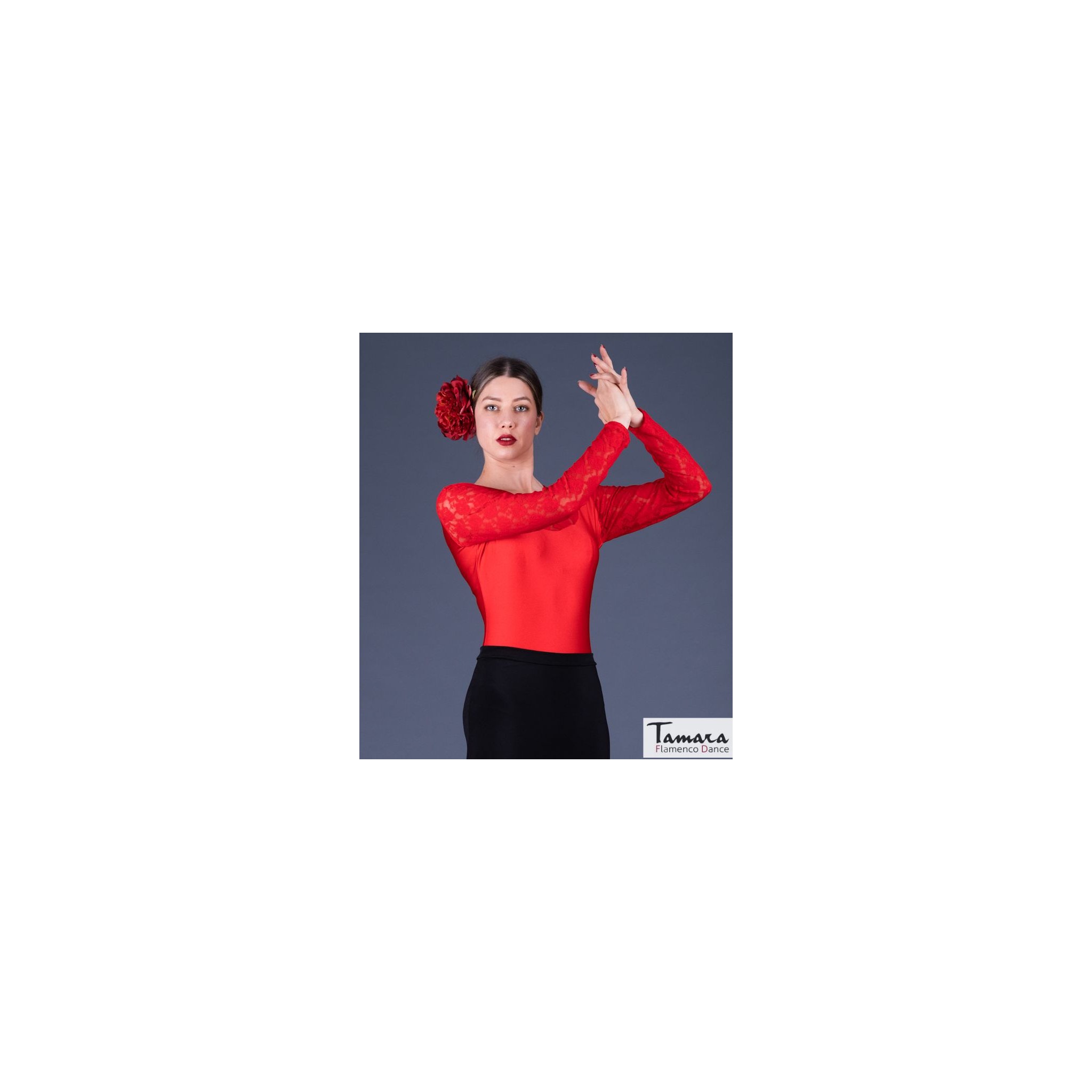 The Tiento Flamenco Dance Body is one of the most sophisticated models with which you can stand out in any show. It is a body made in lycra and with the neckline, sword and sleeves in a beautiful lace. The fabrics are of high quality and adapt perfectly to the body, so you can feel comfortable when performing your flamenco dance movements. The Tiento flamenco body is a model that enhances the body with elegant lines with a bright and sophisticated fabric that makes it perfect for use in events and special occasions. It is available in black and red and in different sizes. They combine very well with more classic skirts, as they give a more refined touch to any flamenco wardrobe that is more basic.