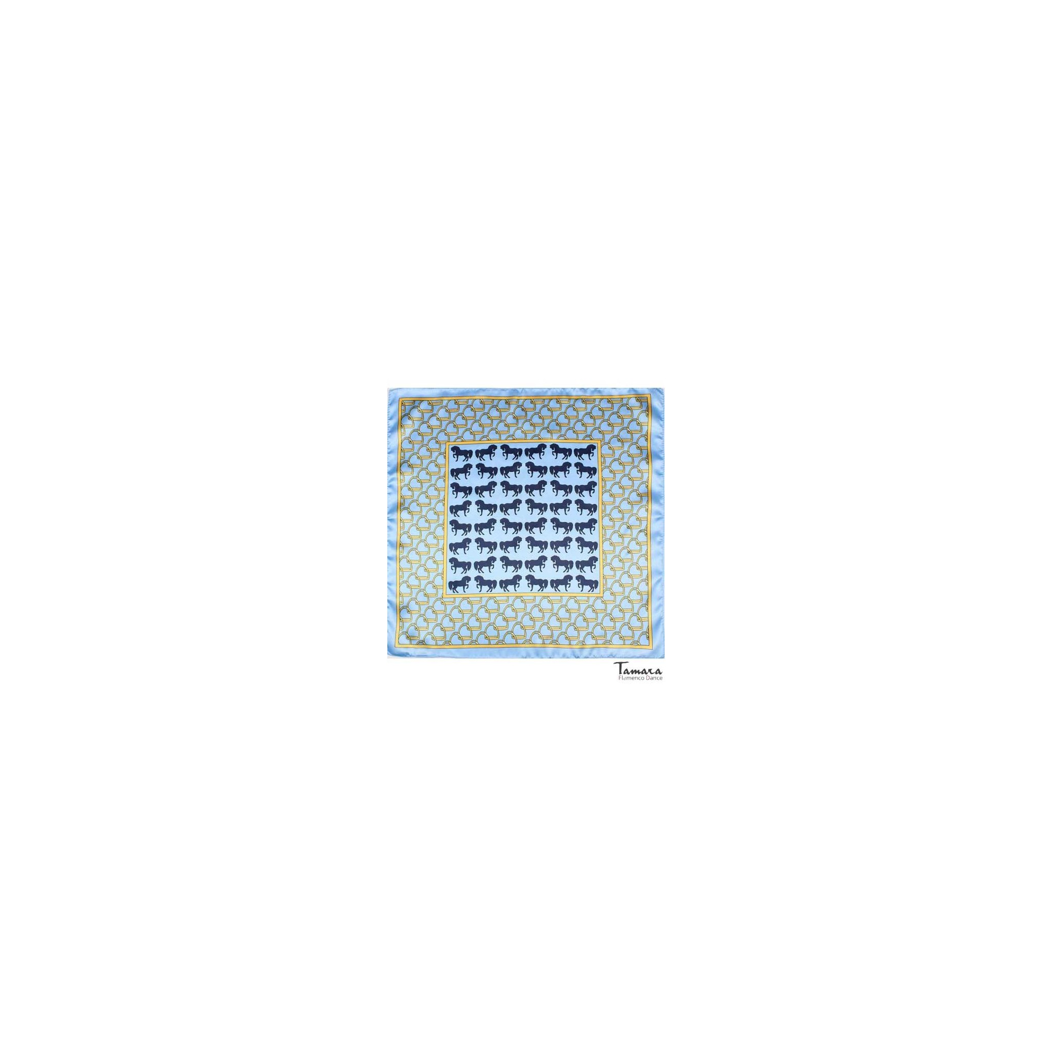 The traditional stamped sash (commonly also called handkerchief or campero outfit) is an indispensable accessory for the waist in any Campero garment as it brings a cheerful and colorful touch to the Campero costumes, which generally have more solid and uniform colors. The prints and drawings that can be found in these complements are many but most are related to the horse world and choosing the right print designs is a matter of personal taste.