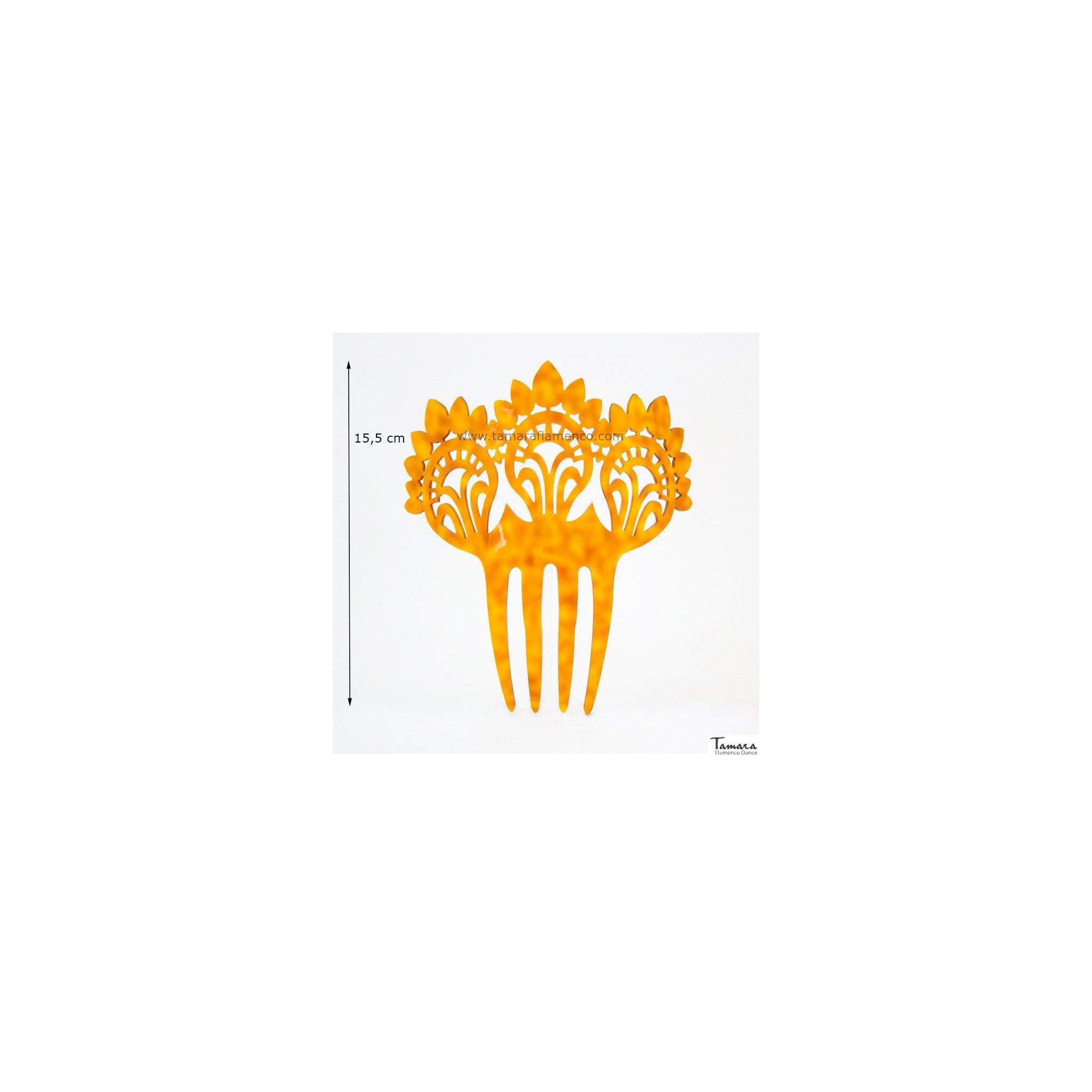 Mother-of-pearl peina in a medium size crown shape made of a flexible and resistant material that in addition to adorning your beautiful hairstyle will help you hold it with the rest of accessories.