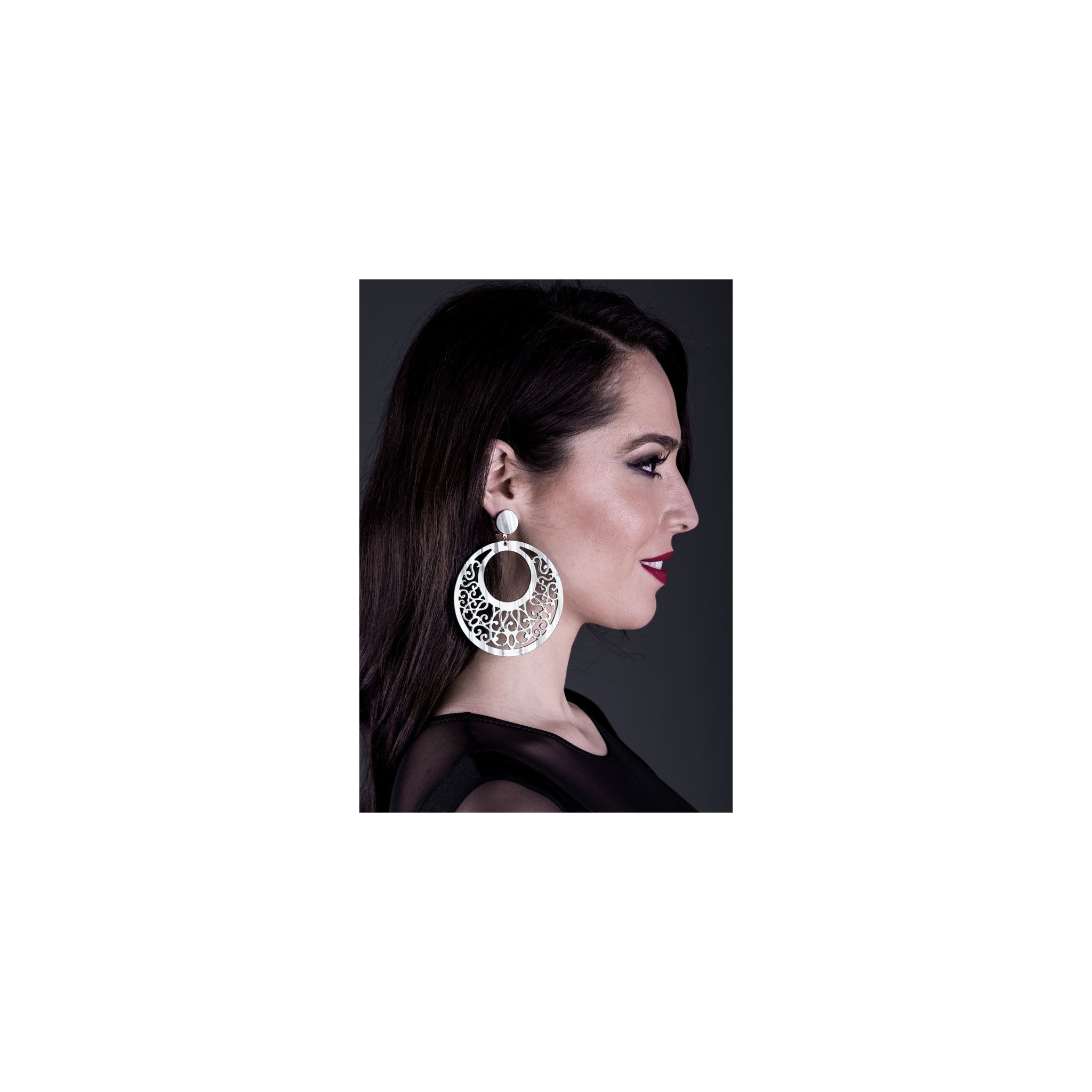 Earrings with a large sized mother-of-pearl finish. They are the best-selling earring models, as they are very favourable, they combine very well with any style of dress or hairstyle and the material is of high quality. Very easy to carry, they weigh nothing and the closure is quite secure.