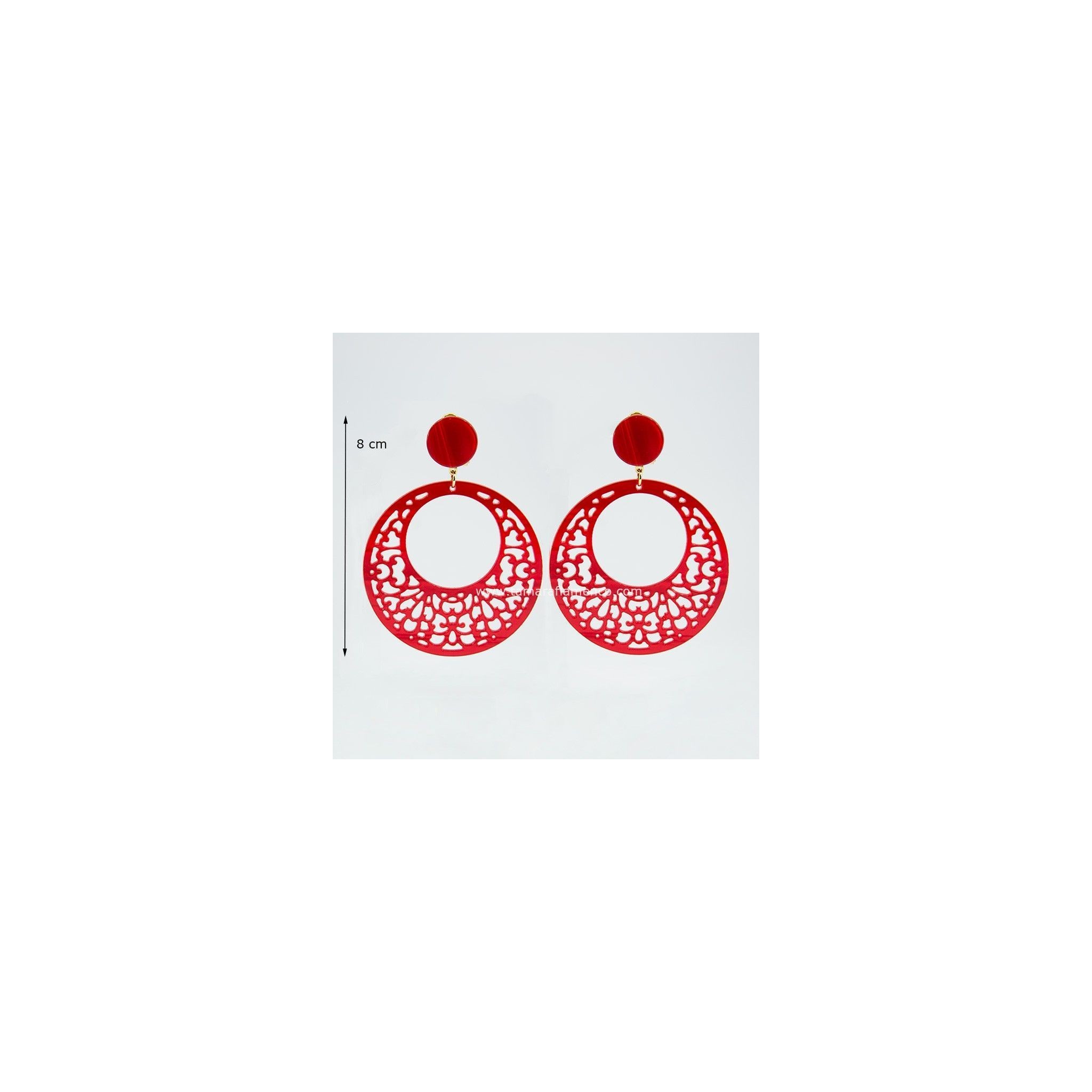 Earrings with mother-of-pearl finish in the shape of medium sized rings (8cm). These earrings are characterised by their beautiful carving, which gives the traditional ring a fresh and flattering touch.