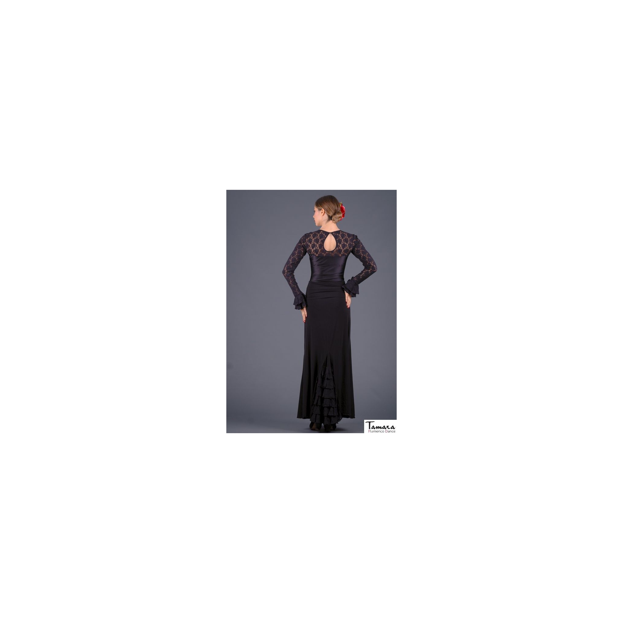 The skirt Almería viscose with lace flounce is a model with a lot of flight and with the detail of the lace flounce in the back that will make any woman feel like a professional dancer wearing it. Its design is very special, because even if it has flight, the hip part is tight thanks to a sash that lengthens it makes the skirt becomes a beautiful dress word of honor. This is why it is a perfect choice for beginners who want to expand their wardrobe with a cheap model that can be used for multiple uses. In addition, the fabric with which it is made is of the highest quality and fits perfectly to the body, making it a very feminine and practical design.
