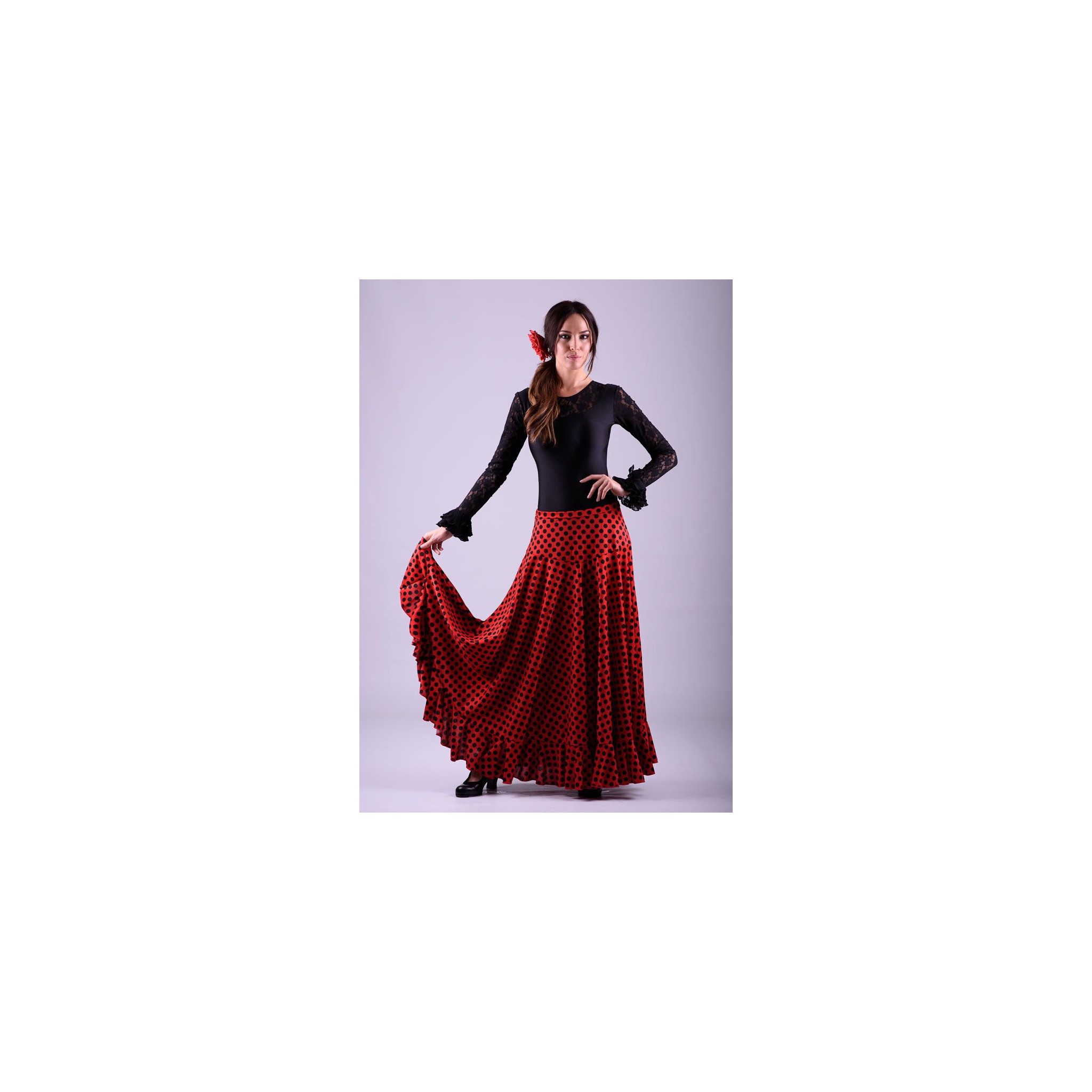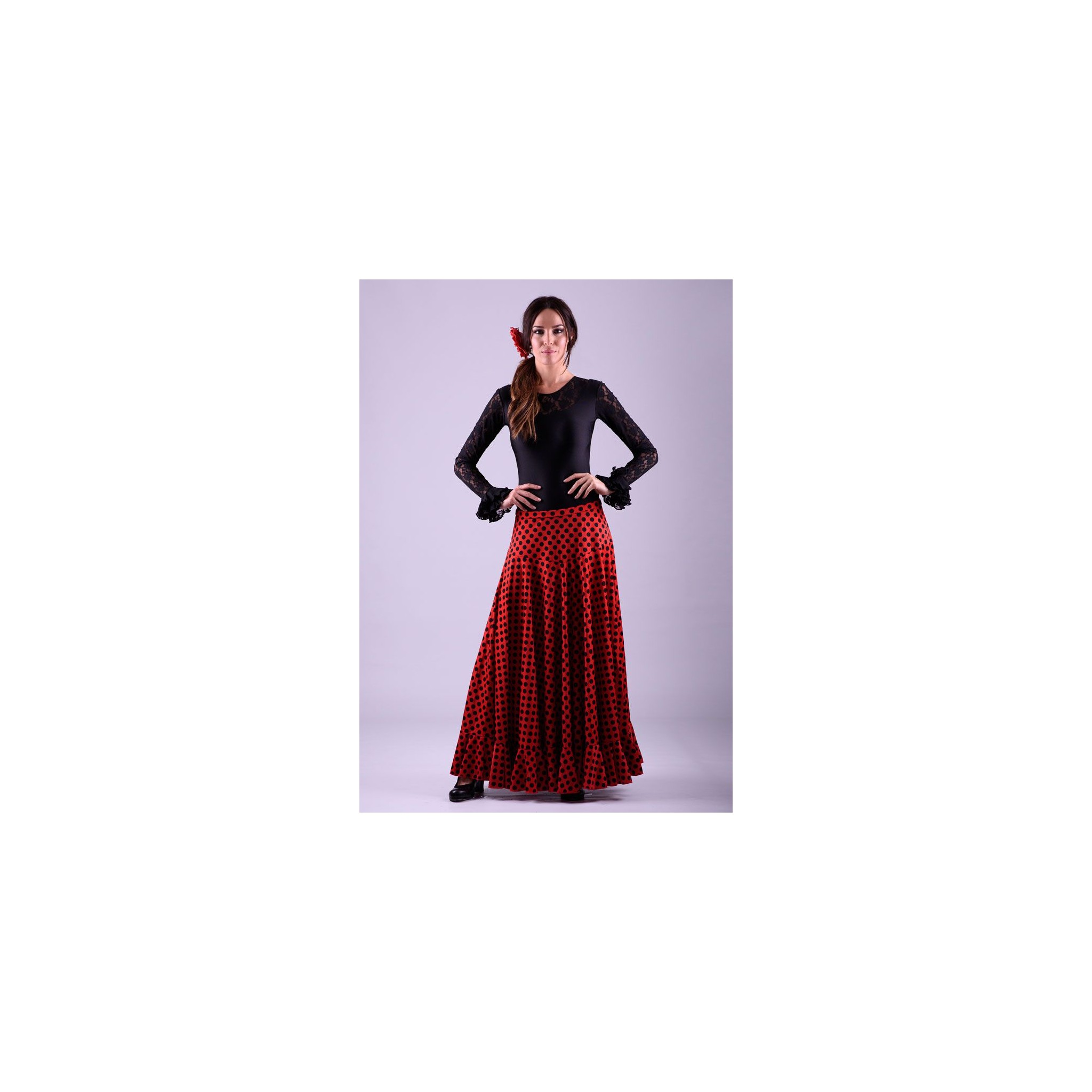 The Sevillian skirt is perfect for your beginnings in dancing. This skirt design has a lot of flight so it makes it easy to learn the dance for the beginner and its economical price makes it the perfect choice to start with. Sevillana is a classic model of flamenco skirt that never goes out of fashion and it is always among the essential basics of any dancer's wardrobe. This model of flamenco skirt allows you to choose different colours for the main part and for the flounce. If you would like this, please indicate the color of the flounce in the comment box at the end of your order. Our Sevilla model is available in children's sizes and is therefore ideal as an academy uniform for teachers and students or for choreographies due to the possibility of customization in different colors.