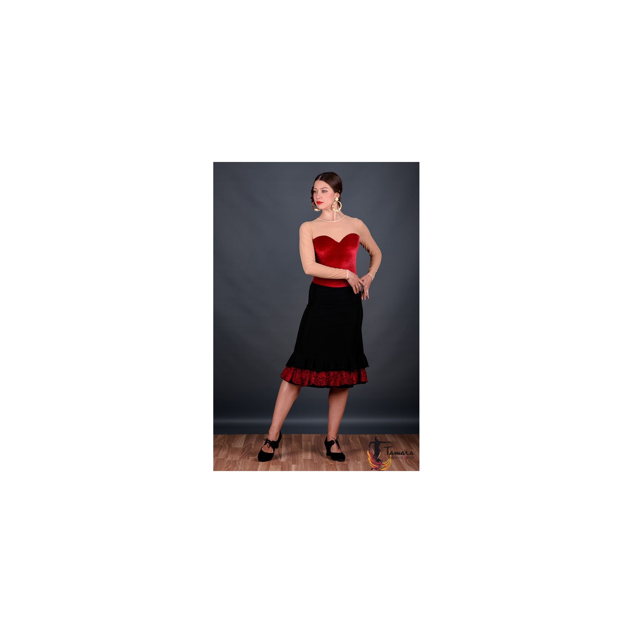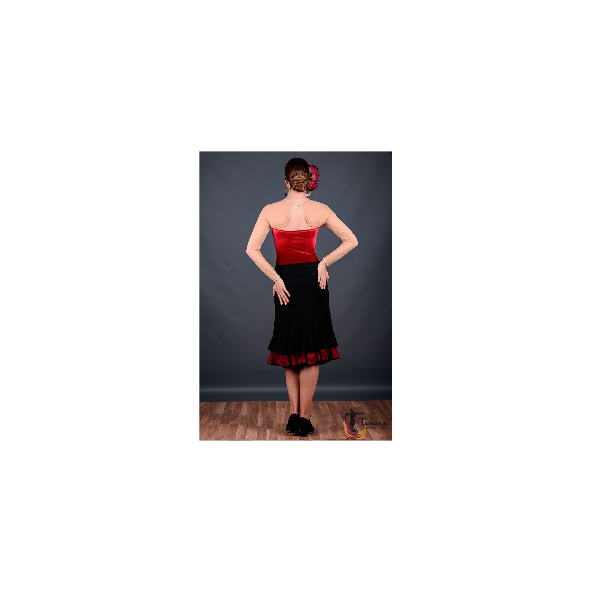 The Amina body for flamenco dancing has a unique design. It is made of velvet fabric and has wide bristles with a neckline with a furrow ending in a beak. Its design is very original because it is not common to have bodys in velvet. It is an excellent choice to combine with velvet or lycra skirts. It adapts very well to the body and makes a very nice figure, in addition the brace is quite wide and fits very well to the shoulder so that it does not move when dancing. Without a doubt it can be a great alternative in our flamenco dance costumes if we want to vary from the classic lycra bodys. With the body Amina you will feel comfortable, elegant and feminine.