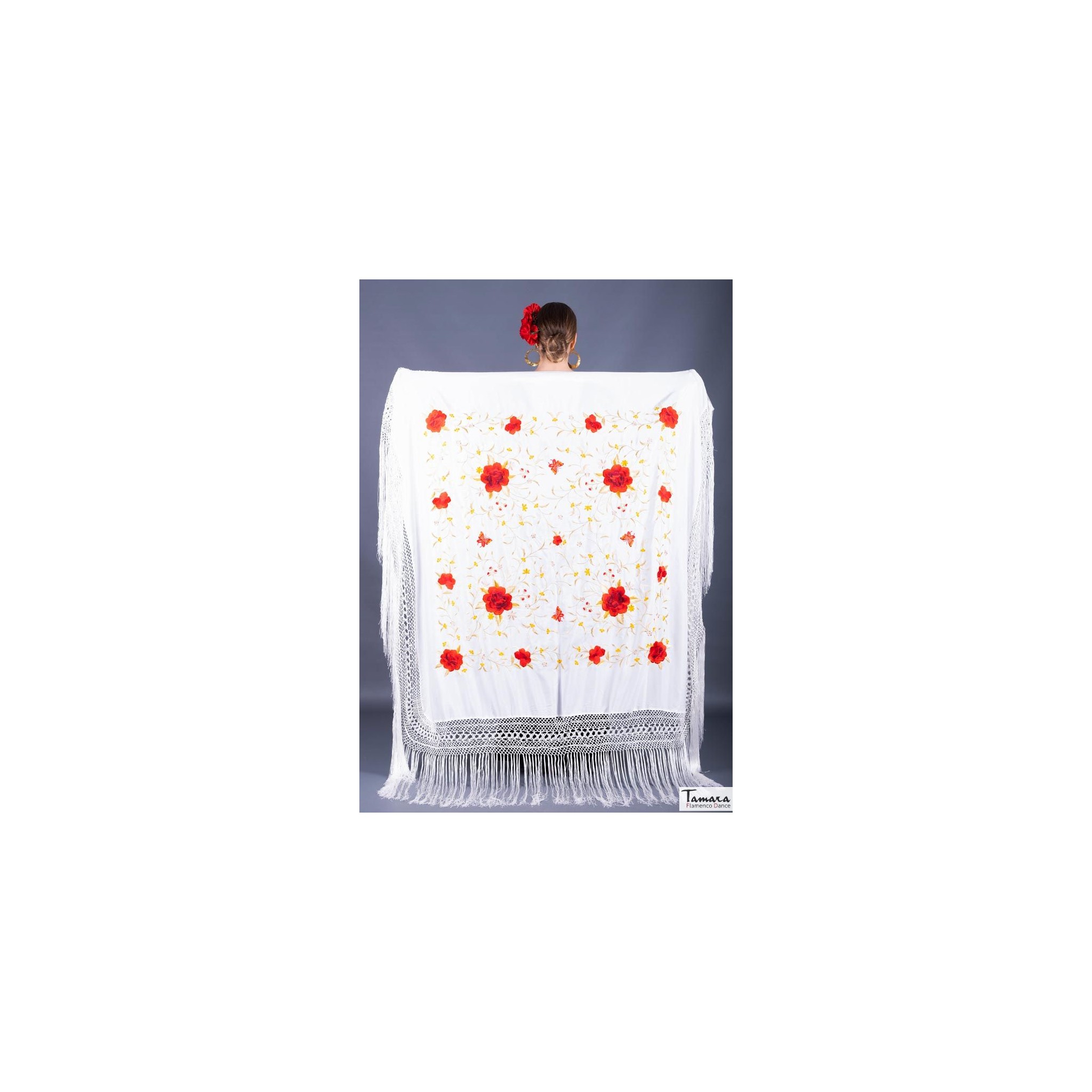 Manila Spring Shawl - Red and Gold Embroidered