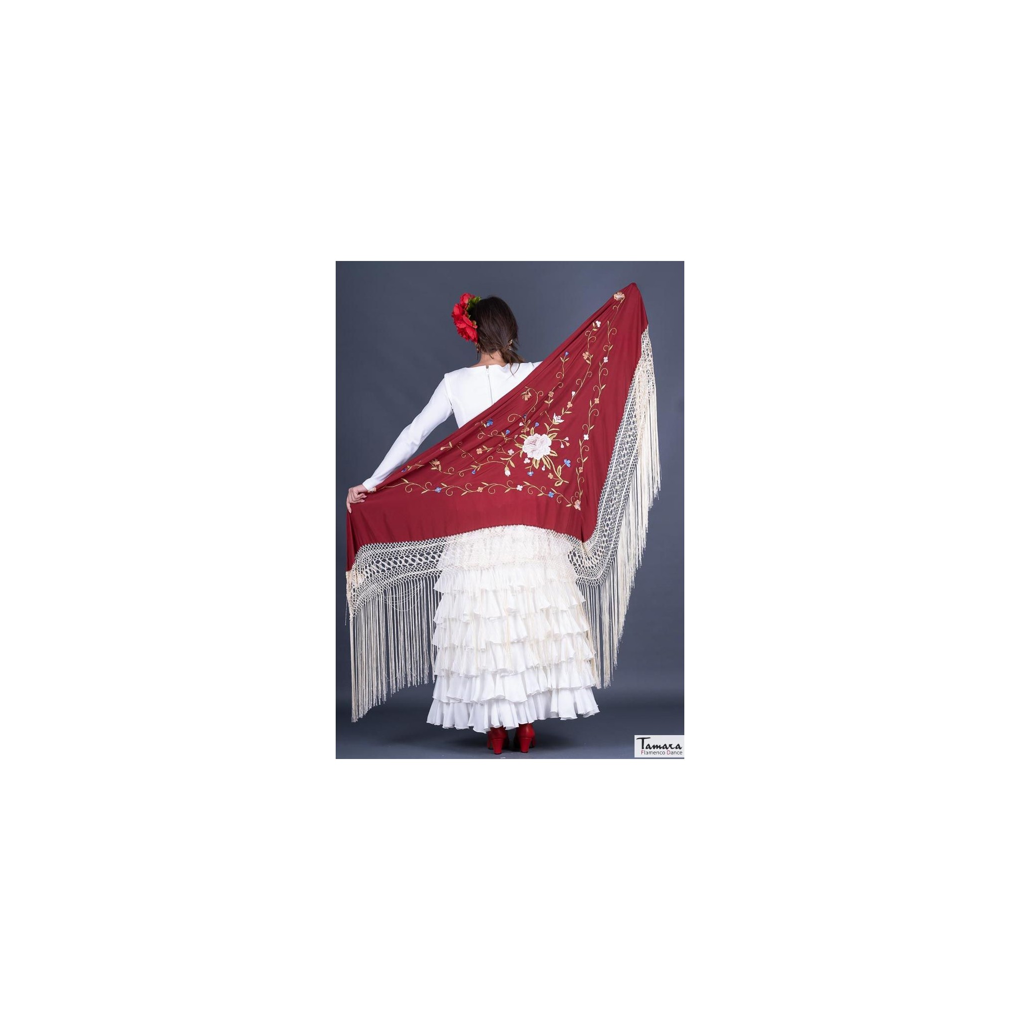 Roma Shawl Ivory Fringe - Earth tons Embroidered