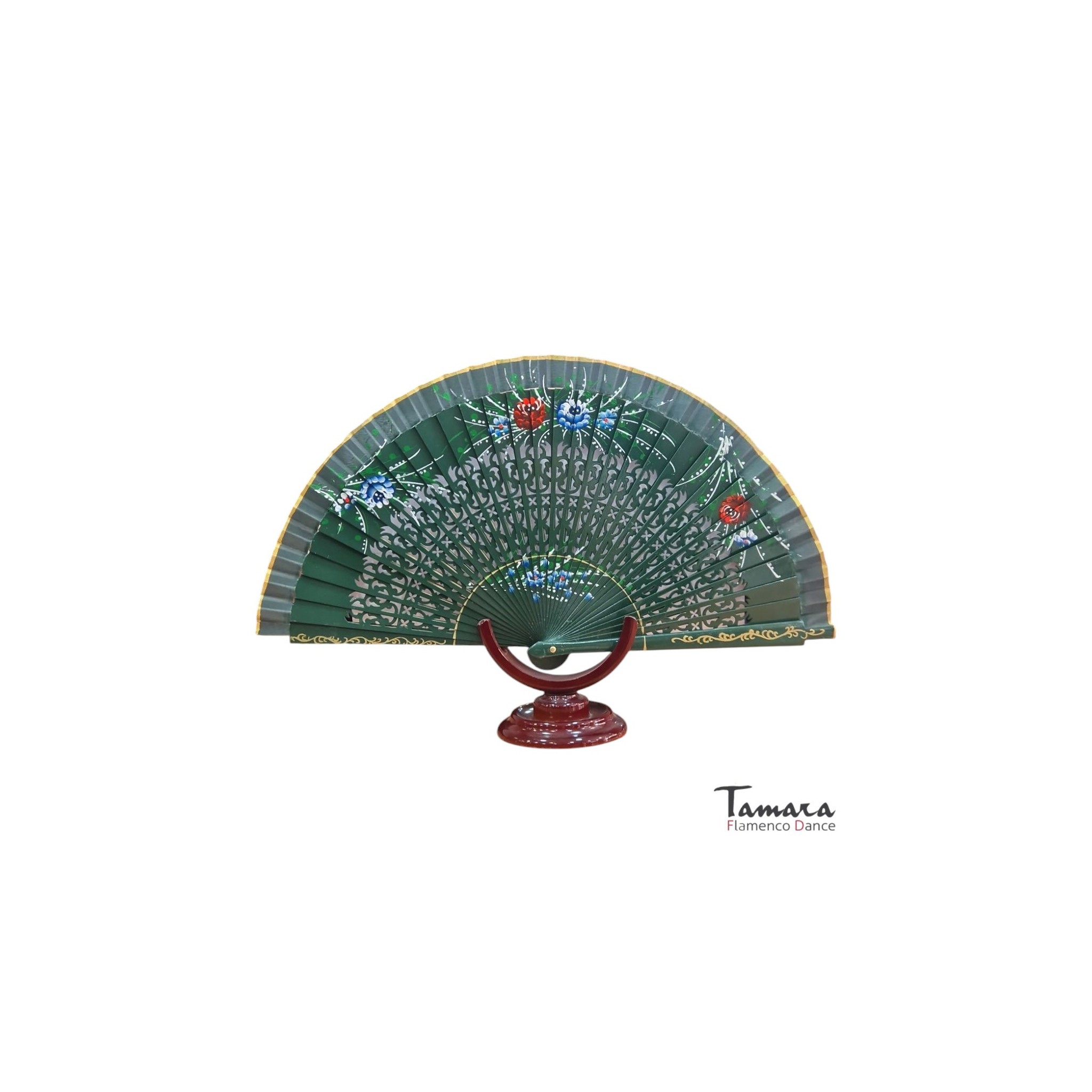 Nuestro abanico español de madera labrada y pintada con flores es el complemento ideal para tus coreografías de baile y para lucirlo con cualquier look de calle. Tiene un tamaño ideal para llevarlo contigo y su peso es muy ligero.