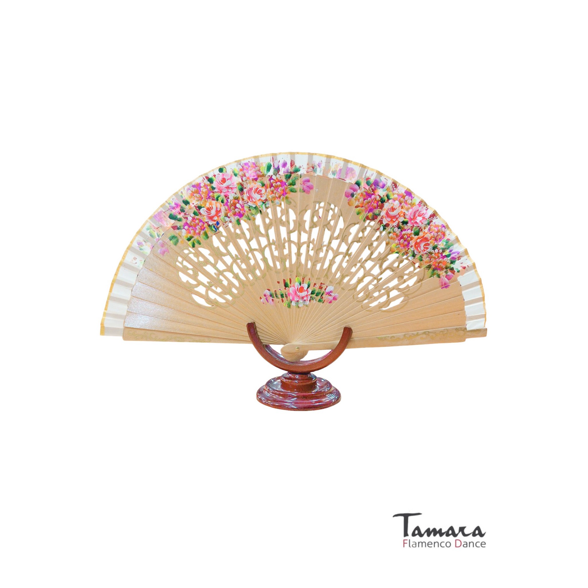 Nuestro abanico español de madera labrada y pintada con flores es el complemento ideal para tus coreografías de baile y para lucirlo con cualquier look de calle. Tiene un tamaño ideal para llevarlo contigo y su peso es muy ligero.