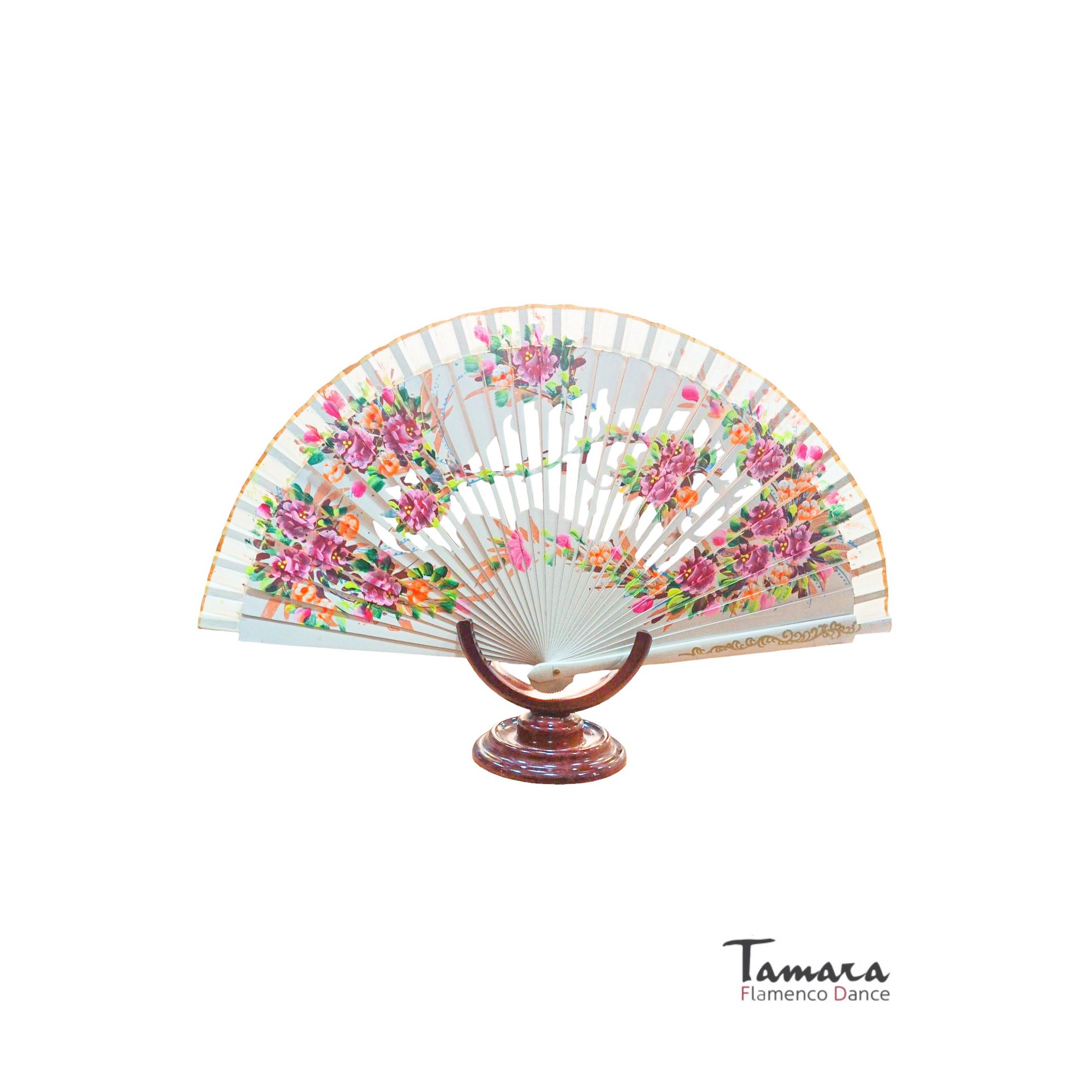Nuestro abanico español de madera labrada y pintada con flores es el complemento ideal para tus coreografías de baile y para lucirlo con cualquier look de calle. Tiene un tamaño ideal para llevarlo contigo y su peso es muy ligero.
