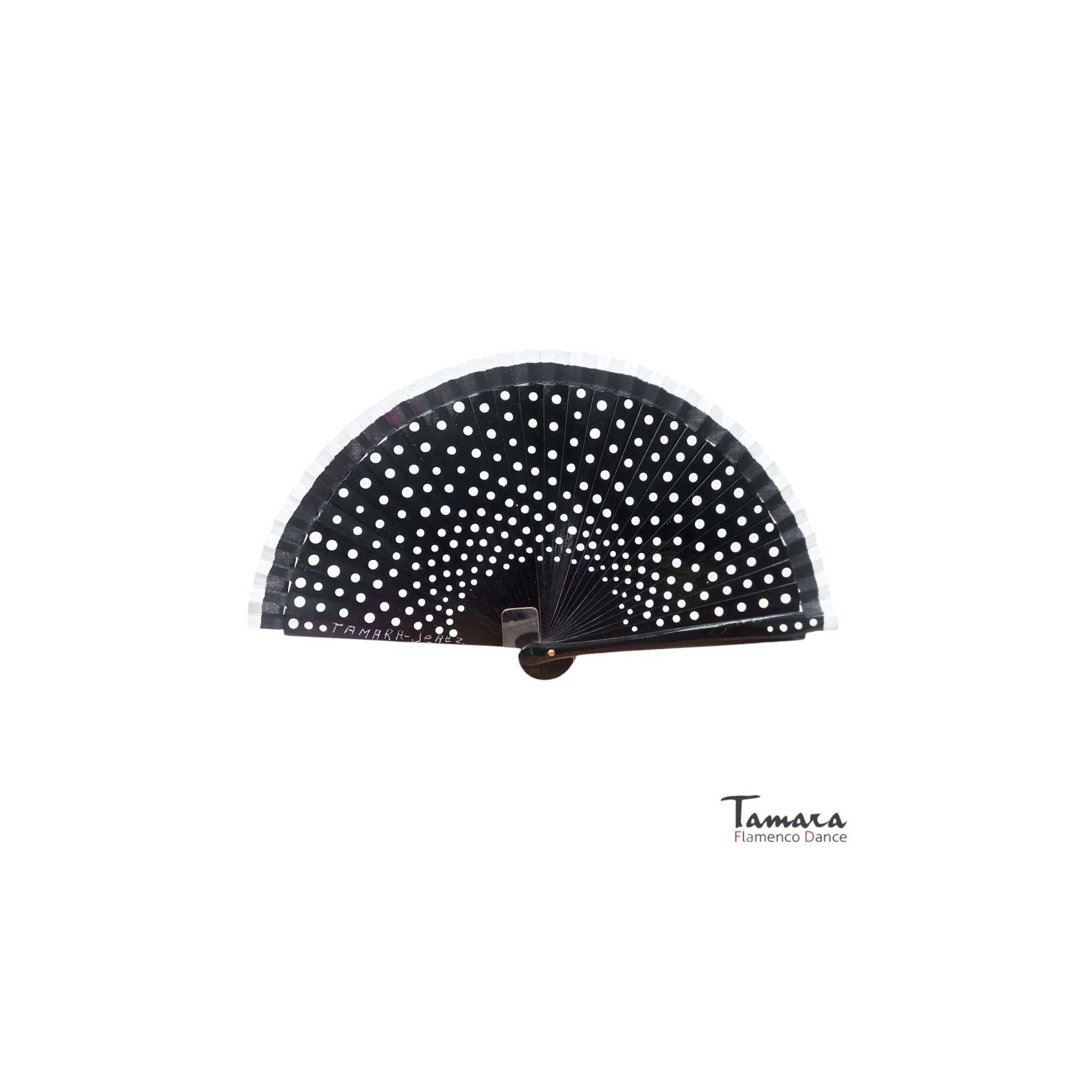 Abanico flamenco (19 cm) - Lunares blancos pintado a mano