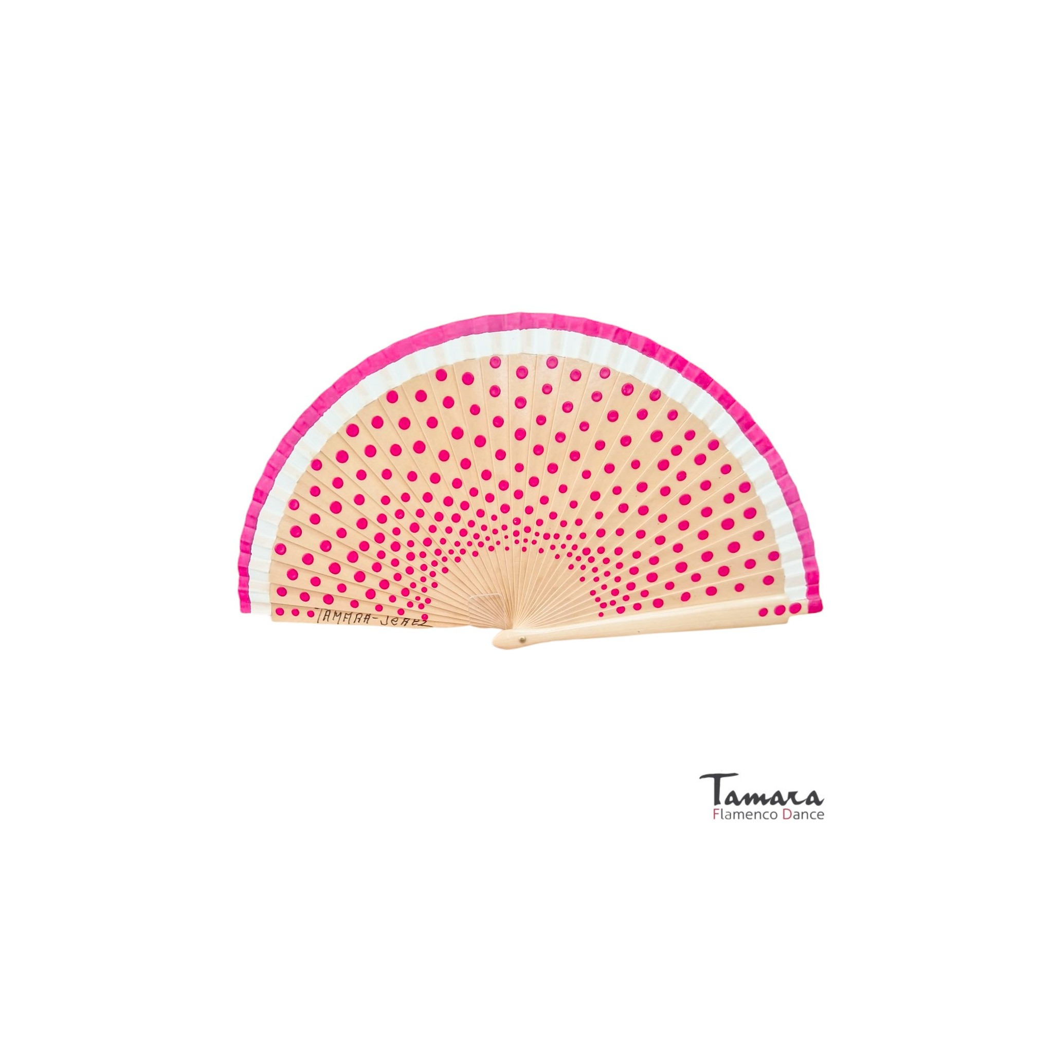 Abanico pintado a mano (19 cm) - Lunares fuxia