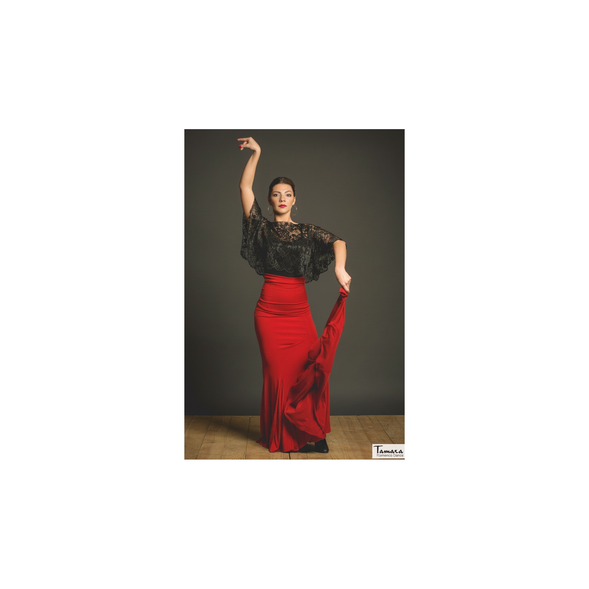 Material: Mirella está confeccionada en un tejido de punto elástico especial para faldas de baile que la hacen muy confortable y ligera. Nuestro punto elástico se ajusta perfectamente a cualquier tipo y forma de cuerpo de bailaora de flamenco y es altamente resistente a las carrerillas provocadas por el roce de los clavos en los zapatos de baile flamenco. Este tejido tiene una bonita caida, no se arruga y no crea electricidad estática.