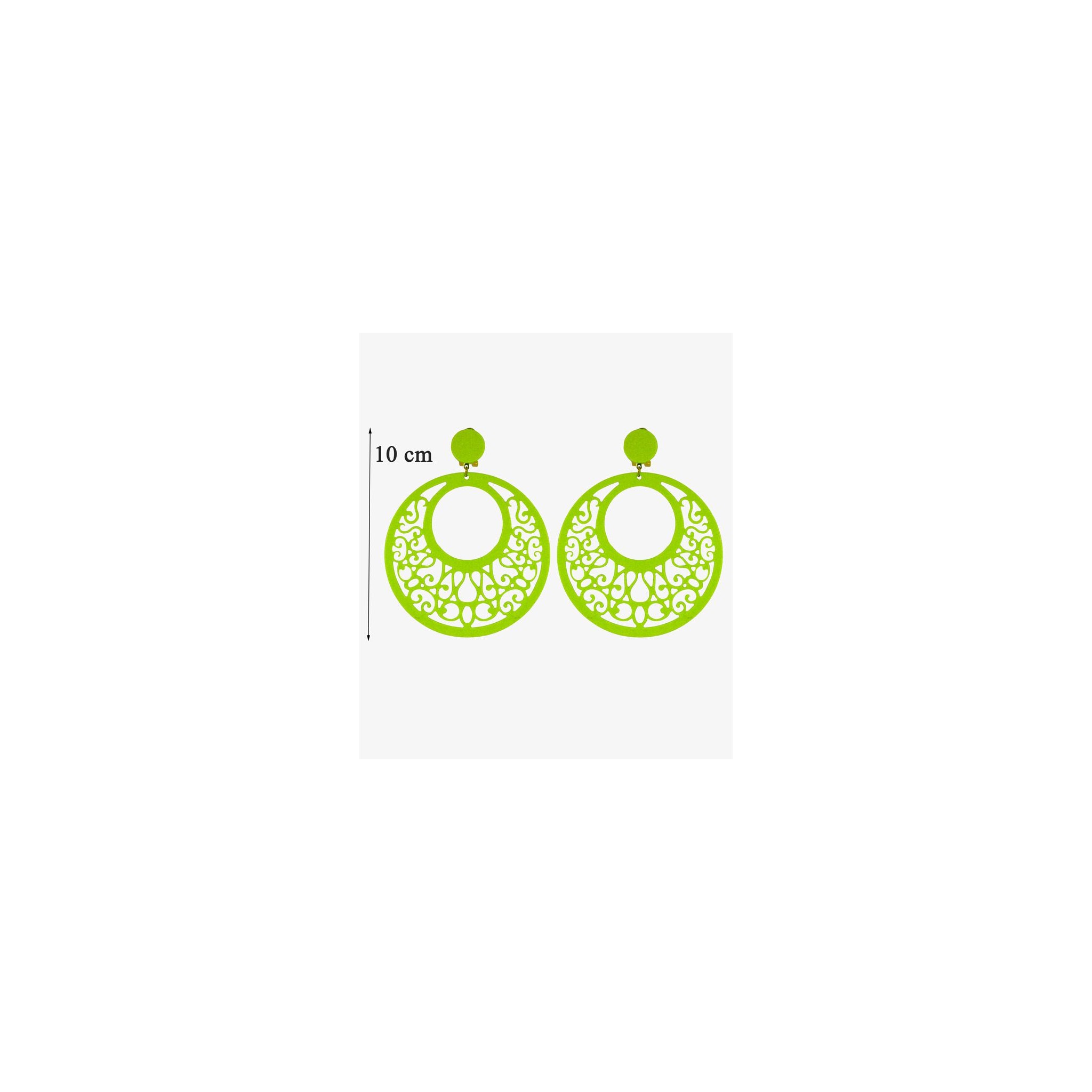 Este modelo de pendientes es uno de los más vendidos. Son unas argollas grandes y vistosas con un labrado muy bonito que está disponible en diversos colores. Son ideales tanto para vestir de gitana como para llevar con vestuario de baile.