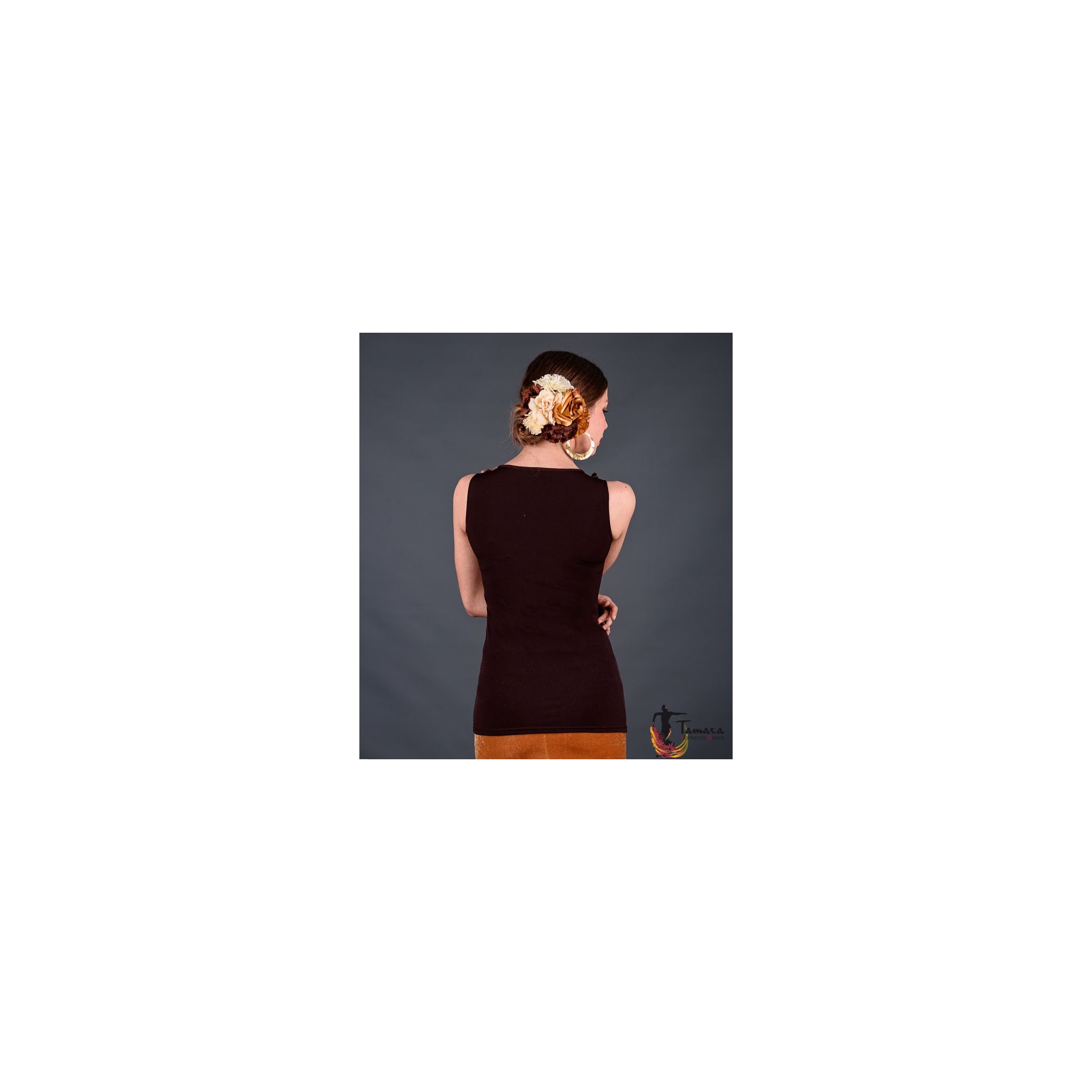 Le t-shirt Tango est l'un des modèles de tops les plus polyvalents pour danser le flamenco. C'est un t-shirt avec des bretelles larges avec des ornements de volants qui entourent tout le décolleté en forme de V. Il est disponible en plusieurs couleurs et combine très bien avec tout type de jupe, spécialement avec le modèle Almeria avec le même tissu en viscose. Il est très facile à porter pour danser le flamenco, vu que son tissu est très confortable et frais. En plus, il met si bien en valeur, que c'est même une bonne option pour le porter avec des habits de rue n'importe quel jour ou pour les ferias et fêtes. Si vous cherchez à agrandir votre vestiaire flamenco avec un t-shirt polyvalent, original et qui met parfaitement en valeur, ce modèle est sans doute celui dont vous avez besoin.