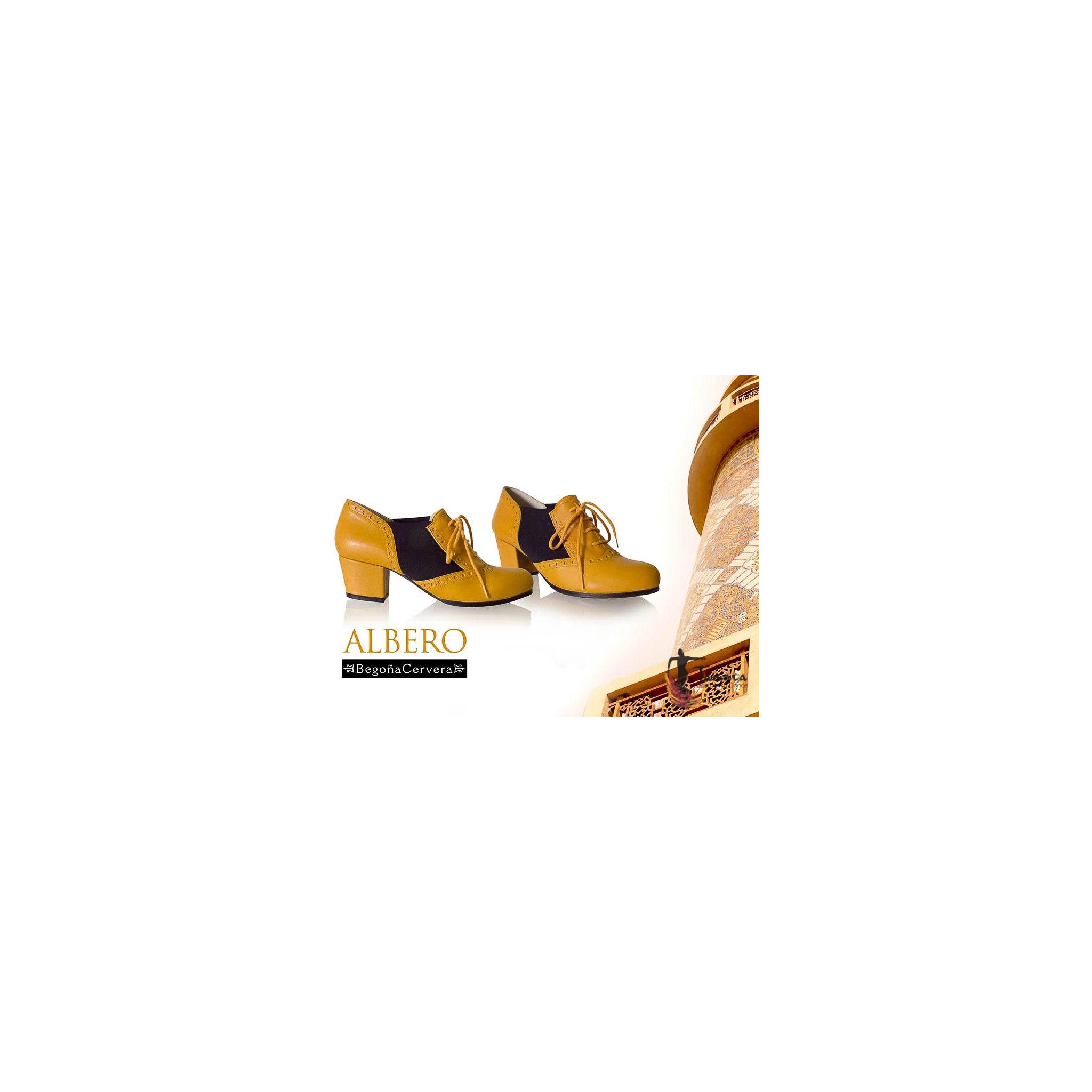 Le modèle Albero Calle est une chaussure de la collection de chaussures de ville de la firme Begoña Cervera. Il est très similaire au modèle Picado de la gamme de chaussures de danse professionnelle de cette marque. C'est une chaussure au style masculin, très similaire aux chaussures de type Oxford, fermée à la cheville et munie de lacets. Dans la partie centrale, il y a des élastiques qui rendent le port de cette chaussure encore plus confortable, car les chaussures qui couvrent tout le pied peuvent sembler un peu serrées à ce niveau là. Ce design donnera une note d'élégance à n'importe quel ensemble que vous voulez porter, qu'il soit basique ou sophistiqué. Comme avec le reste des modèles de Begoña Cervera, vous pouvez choisir le talon que vous préférez. De cette façon, vous pouvez donner une touche de couleur à ce modèle qui fera plus sérieux avec un talon à fleurs peint à la main ou avec votre nom personnalisé.