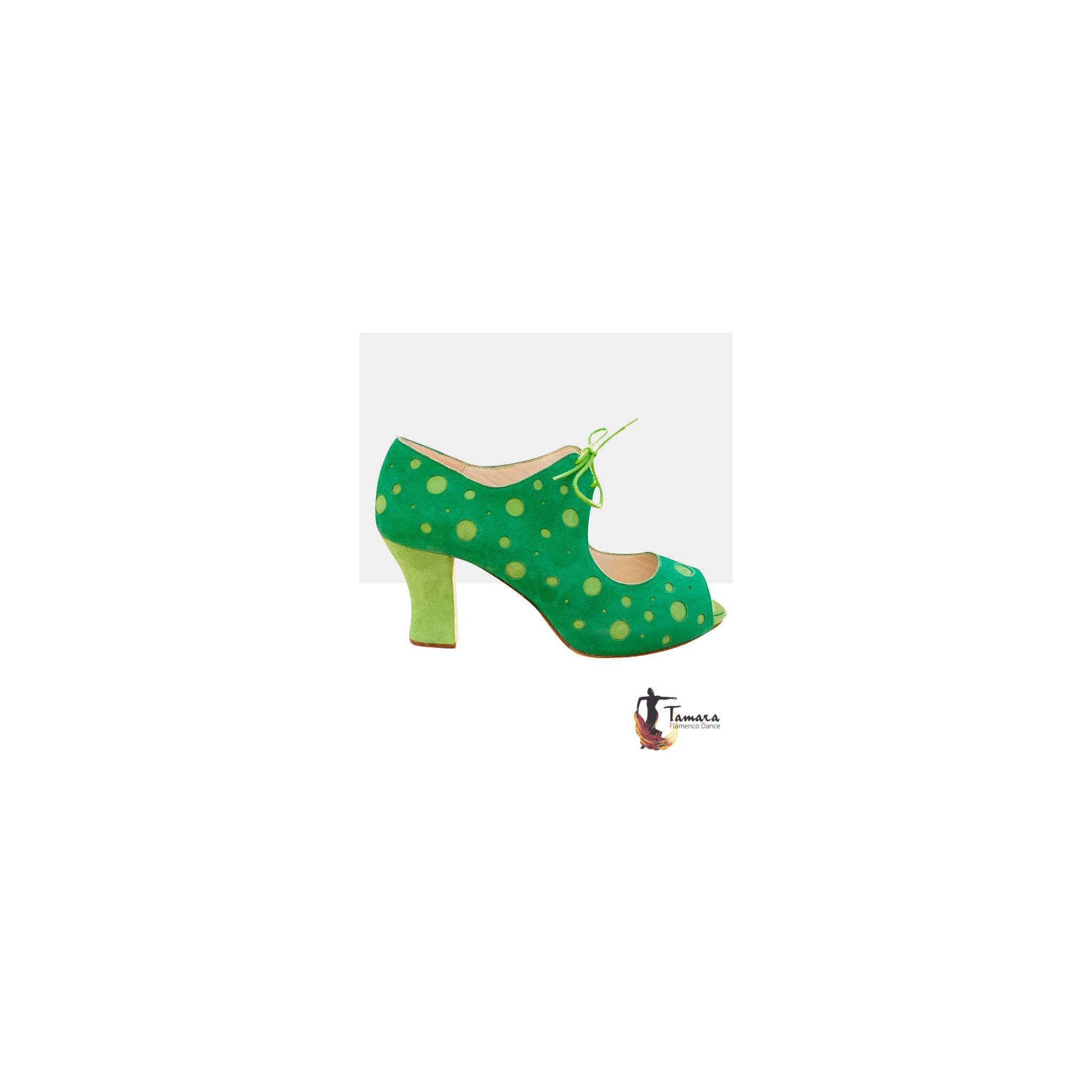 Le modèle Topos Plataforma est une chaussure de la collection de ville de la firme Begoña Cervera. Ce design est différent des autres modèles de ville de la marque. Il s'agit d'une chaussure dont le devant n'est pas recouvert, avec une plate-forme confortable et un talon d'environ 8 cm. De plus, comme son nom l'indique, il a des grains de beauté qui ornent tout le corps de la chaussure et une fermeture en dentelle qui fait que le pied va plus en avant. Ceci aide le pied à ne pas glisser vers l'avant, comme c'est commun avec ce type de chaussure avec une petite ouverture au niveau des orteils. Le design Topos est une vague de fraîcheur dans la gamme de chaussures de flamenco pour les professionnels du même fabricant. Nous pouvons vous assurer que ce sont des positions spectaculaires et c'est la chaussure qui donnera de la couleur à vos pieds pendant les jours d'été.