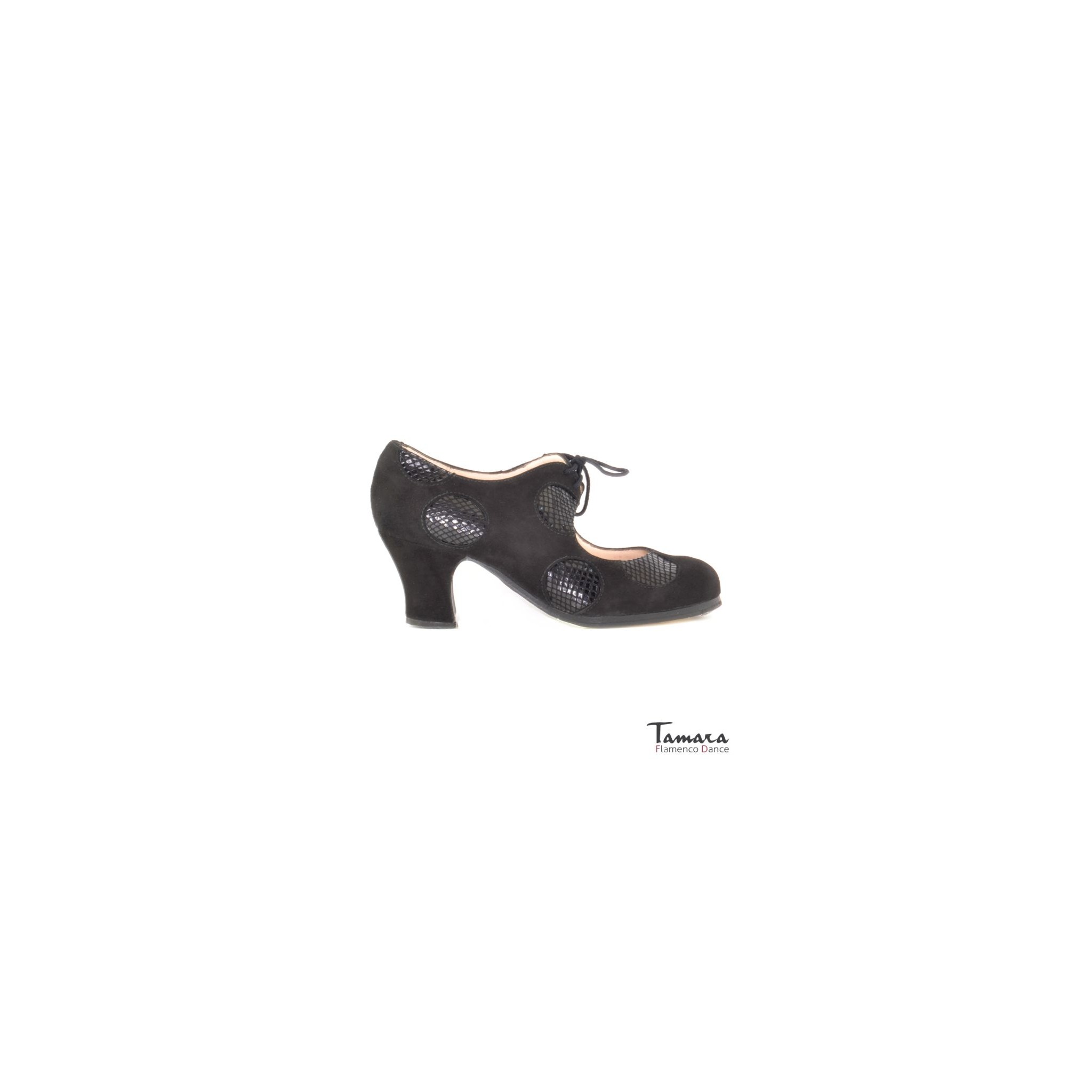 Le modèle lacets avec pois de Begoña Cervera est une chaussure de danse professionnelle avec l'un des modèles les plus Flamenco. Les lacets avec pois sont un modèle andalou très féminin grâce au design il est parfait pour donner une touche unique à toute femme qui le porte pour une occasion spéciale, mais en même temps, il peut être utilisé dans la journée ainsi que pour la danse flamenco. Ce modèle a un grand maintient et un grand confort. Ce modèle de chaussure professionnelle de flamenco est très polyvalent et peut être très élégant si différents matériaux et couleurs sont combinées. Les lacets avec pois sont l'une des dernières créations ajoutées au catalogue des chaussures professionnelles Begoña Cervera design Flamenco.