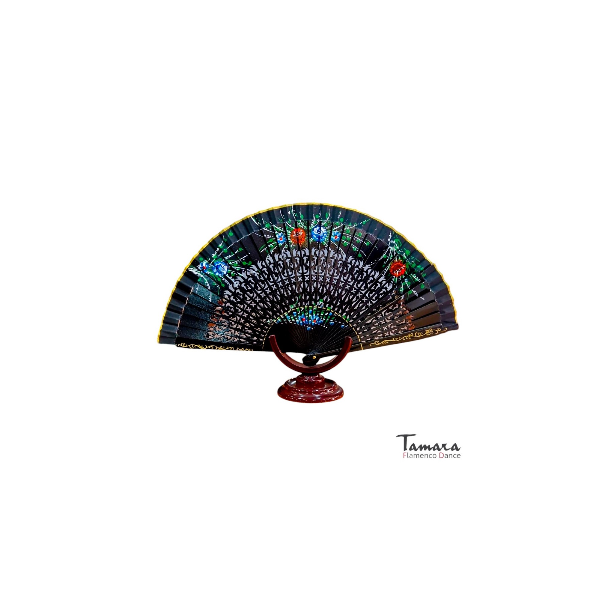 Notre éventail espagnol en bois sculpté et peint avec des fleurs est le complément idéal pour vos chorégraphies de danse et pour le porter avec n'importe quel look de rue. Il a la taille idéale pour être emporté avec soi et est très léger.