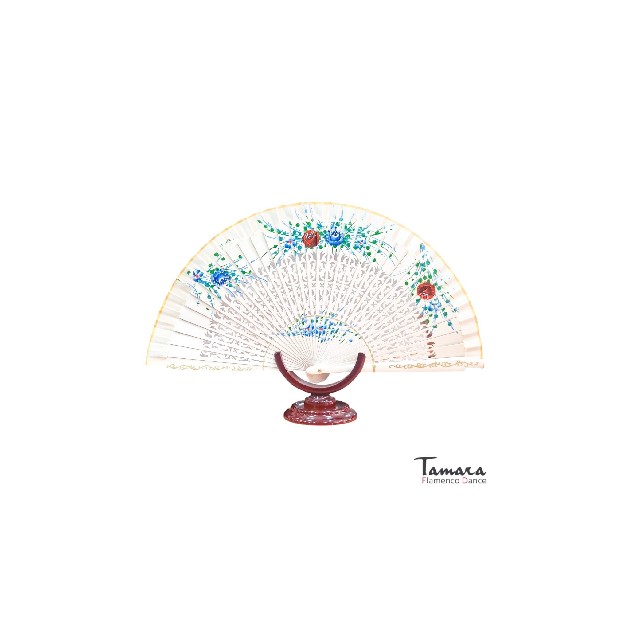 Notre éventail espagnol en bois sculpté et peint avec des fleurs est le complément idéal pour vos chorégraphies de danse et pour le porter avec n'importe quel look de rue. Il a la taille idéale pour être emporté avec soi et est très léger.