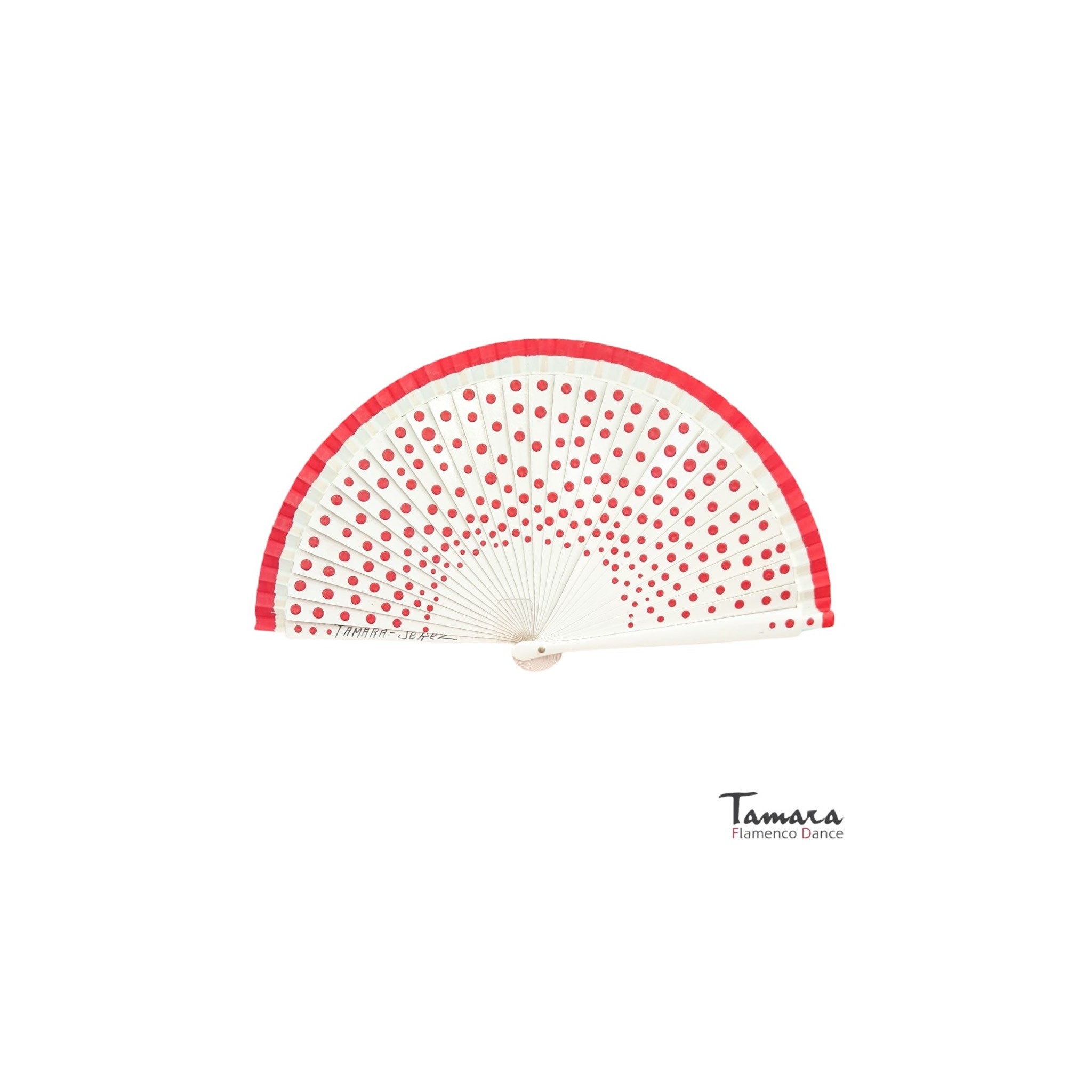Eventail flamenco (19 cm) - peint à la main, à pois rouge