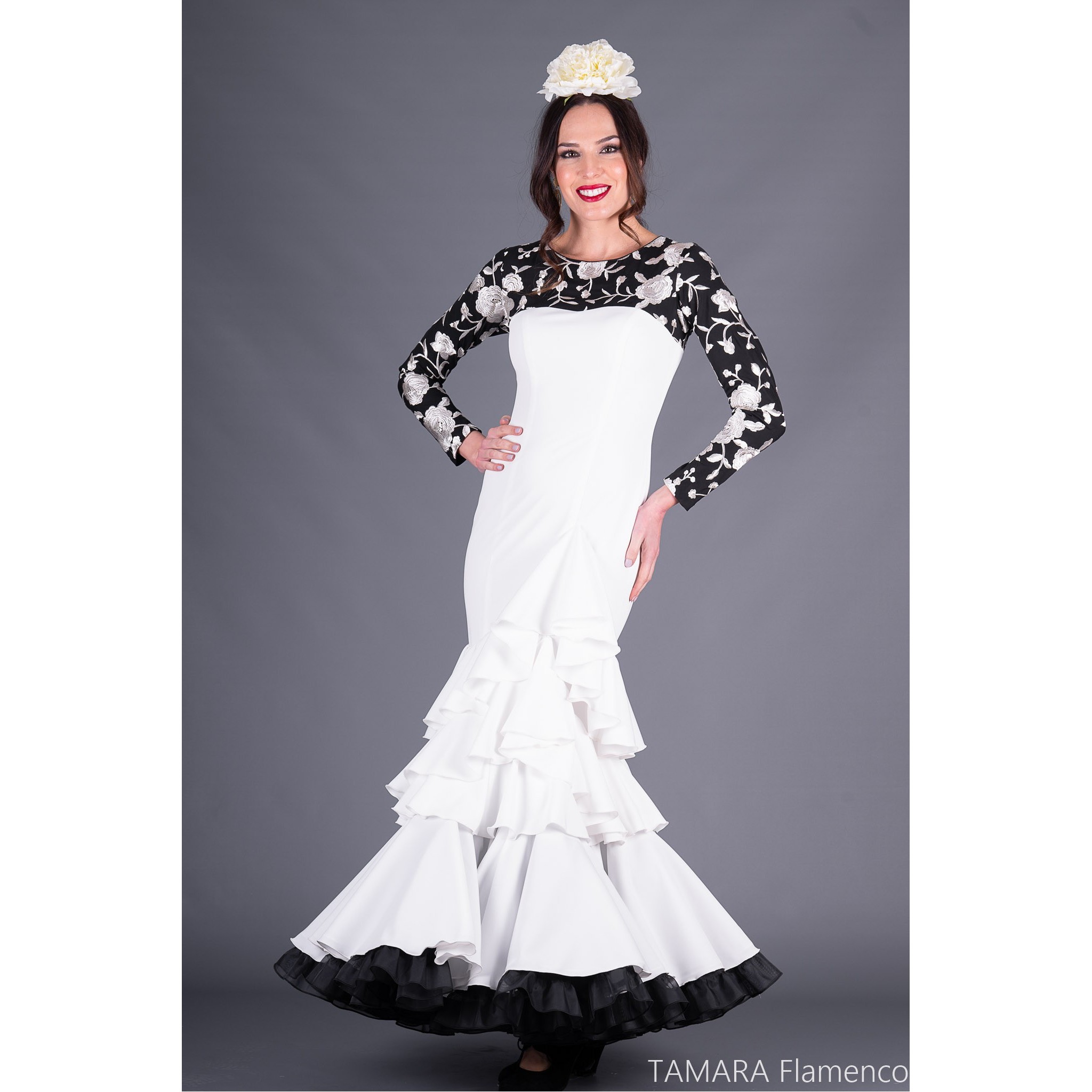 Robe de flamenco Copla Noir fleurs brodées ivoire